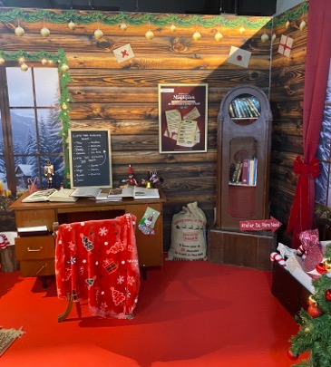 Étape 1 : dans le bureau du Père Noël, les participants résolvent des énigmes pour libérer des lettres magiques.